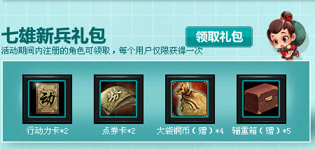 3 、活动期间内,新注册角色的用户可领取新兵礼包一个,每个QQ号码只可领取一次。