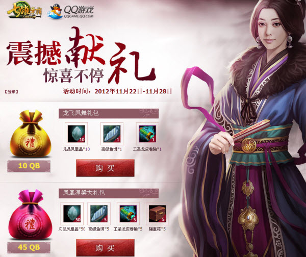 1 、活动期间可以点击页面的购买按钮获得相应的礼包