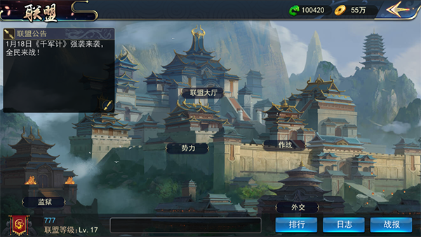 联盟公告:公告为联盟内去全部玩家可见。主要作用于盟主/副盟主发布战争或交互指令