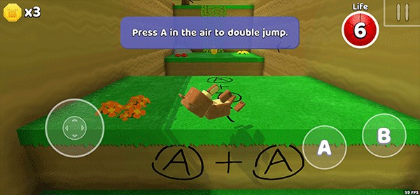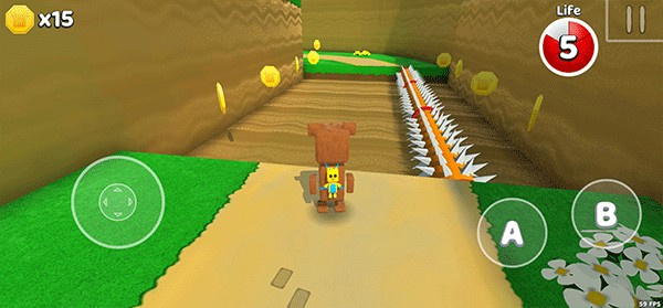 2、操作很简单,操控小熊一路去冒险,遇到高台或者坑洼,点两下A就能二段跳;