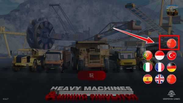 1、游戏自带中文,不会英文的玩家不用担心,找到在右方一并排列的国旗图标就可以切换成中文啦;