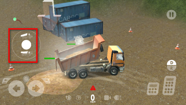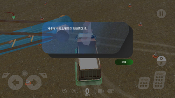 8、然后会出现一个“倾倒泥土”的轮盘,你可以手动操作卡车斗,控制它往上或往下翻,把泥土倒下去;