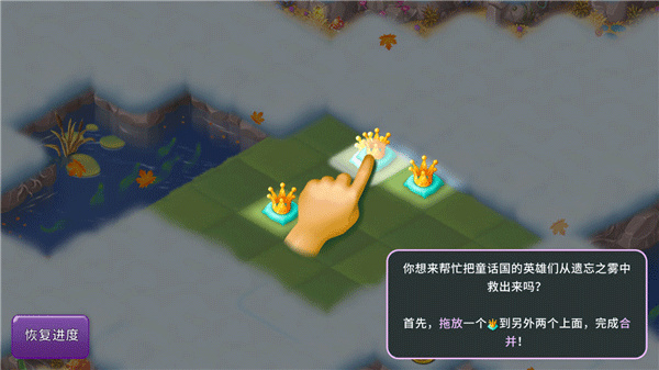 小编简评:《合并童话国》是一款和童话故事相结合的休闲冒险游戏,通过合并物品来驱散迷雾并且解锁新的土地和角色同时也可以建造自己的王国。游戏提供开放式玩法和搭配了策略性挑战,完成角色订单和每日任务,收集宝物,打造独