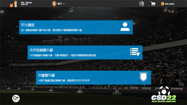 3、在这里有3个选项可以选择,分别是职业模式,选择任何的俱乐部和创建俱乐部,而每个模式都不同的玩法;