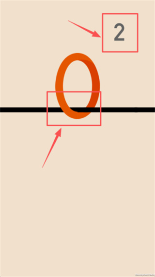 2、一旦发现橙色圆环降落的时候,需要查看周围中间的空心部位,对准后,将其环套在线上,右上角将会显示当前的分数。