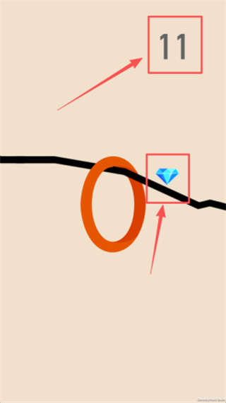 3、随着分数不断累计到11的时候,右边的圆环将会出现蓝色的砖石,尝试控制圆环挑起,并且快速通过黑线,才能持续得分。