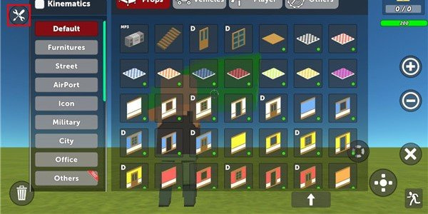 5、最后可以点击左上角的工具图标来选择各种道具和资源来进行建造。