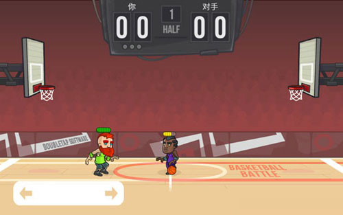 2、接着按住左下角的两个箭头可以控制角色移动,通过按住右侧的屏幕控制跳跃以及进行跳投时需要松开手指