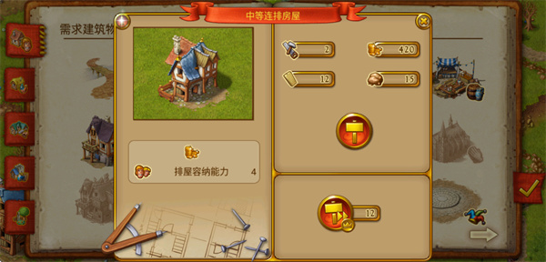 2、接着进入游戏后就有自己的城镇需要搭建,而图中的小房子是提供人口来干活;