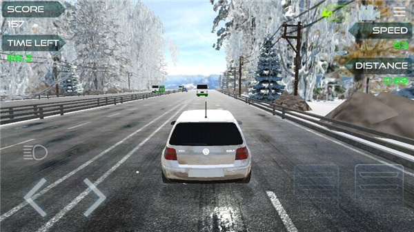 4、游戏开始后,左上角会显示你的分数和剩余的挑战时间,右上角则显示当前速度和距离差距;