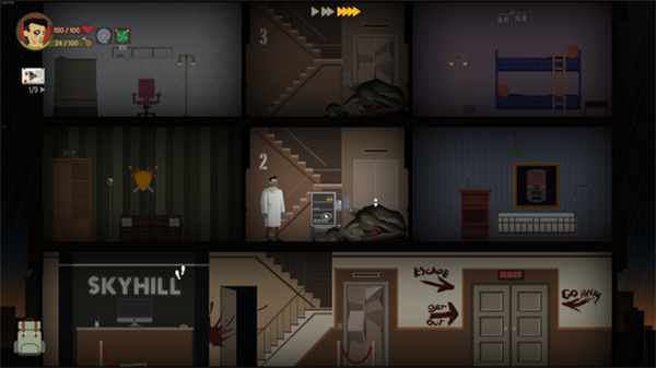 《天空之山》是一款漫画式风格的末日求生题材手游,背景设定在第三次世界大战后的废土世界,在昏暗的酒店中以及随机生成的楼层中搜集资源,制造武器与其他未知怪物来进行战斗并逃生出去,以回合制来进行战斗同时也非常强调于资源管理和策略生存。