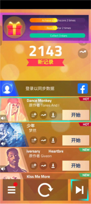 1、首先进入游戏界面选择想要挑战的歌曲;