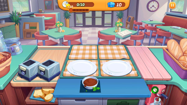 3、不断闯关、开新店、飞向世界各地,用烹饪技术收服每一位食客的胃,并且吸引更多新的顾客;