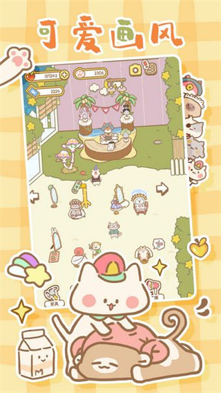 2、轻度地放置管理模式机制,不需要无时时刻在线肝游戏,并且猫咪员工会自动工作来赚取收益;