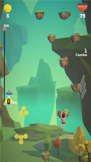 3、每个关卡的距离和地形都不一样,在攀爬过程中会随机生成各种障碍,需要通过灵活观察和躲避。