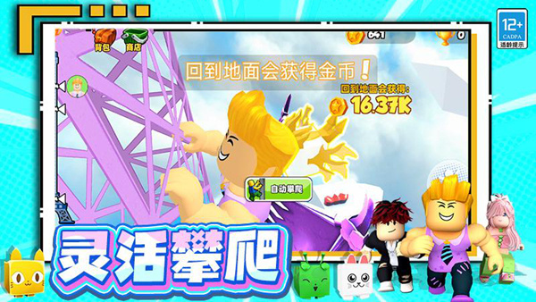 2、通过收集大量金币来用于购买强大地翅膀和可爱地宠物,解锁和升级更强地属性以增加攀爬能力和稳定性;