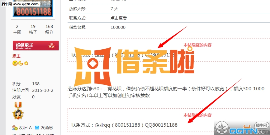 5.如果以上方式均不能够满足你的借款需求,你需要借款更多。那么请进入 【我打借条】版块进行发帖让所有老板来主动筛选看。