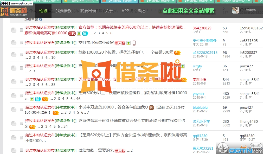 1.首先需要注册本站会员,注册成功后进入【核心借贷板块】版块,版块中均是老板发布出借信息帖子。http://www.jietiaola.com/forum-41-1.html