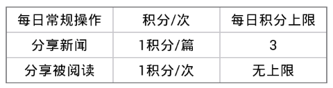 1、分享新闻、1积分/篇,每天3上限