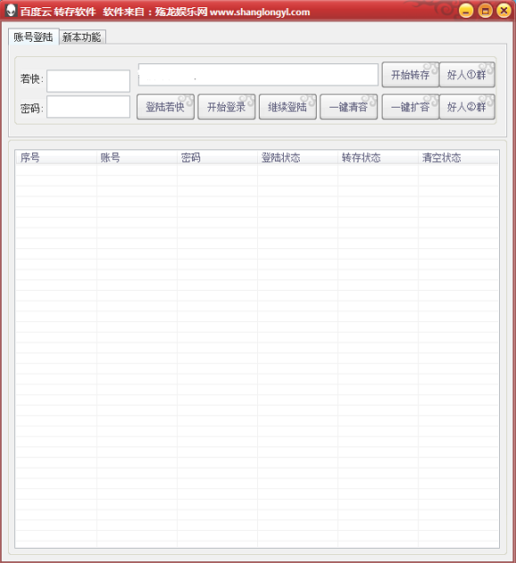 殇龙百度云转存工具是一款可以帮助你一键批量转存百度网盘资源的软件,这款软件非常实用,它专为百度云网盘用户打造,帮助一键批量转存网盘上的资源,让你免除手动操作的烦恼,不需要一个一个去转存了,非常方便好用!同时软件操作简单,欢迎有需要的朋友免费下载使用!