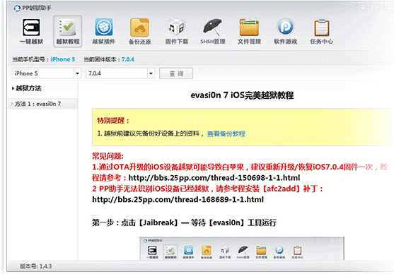 3.PP越狱助手可自动识别并搜索匹配的越狱工具与教程。无需您手动搜索越狱方法,方便快捷。