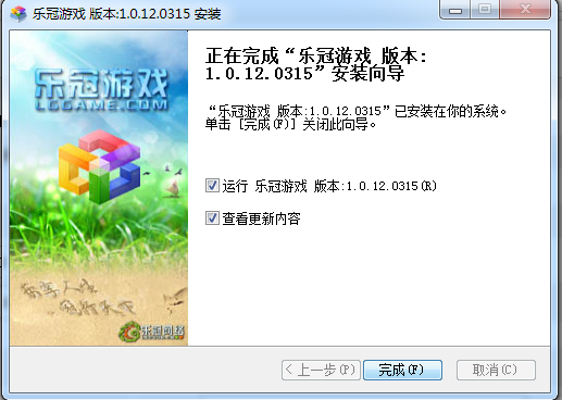 游戏安装完成,勾选运行乐冠游戏,点击完成即可。