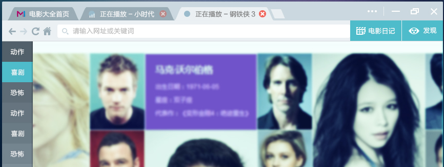电影浏览器具有资源多、更新快、服务好、安装省四大特点,是电影网自主研发的新一代电影垂直浏览器,安装电影浏览器,和妹子一起看4W部院线大片,独家首发,你想看的这里都有。