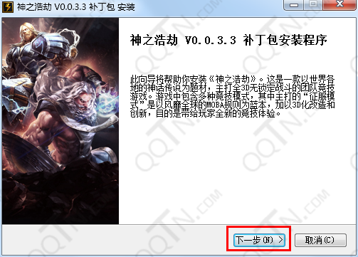 2.进行神之浩劫补丁包安装界面,点击下一步