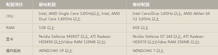 配置要求: