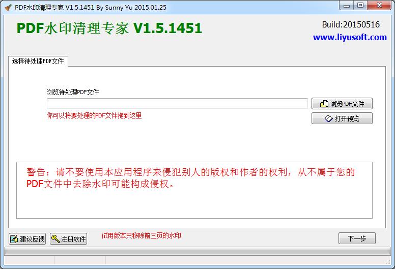 1、运行执行程序 PDFWatermarkRemover.exe