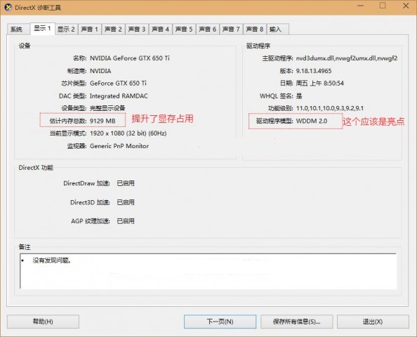 这款驱动的亮点则是支持驱动程序模块:WDDM 2.0,也就是微软最新的DX12。不过DX12依然还在开发中,即便是Windows 10自身其实也没有完成,依然在完善中,更何况NVIDIA的驱动目前只支持Kepler、Maxwell 1和2代架构,早期的Fermi不支持WDDM 2.0。所以真的要感受DX12带来的性能提升的话,还是静静地等待DX12上市了再说吧。