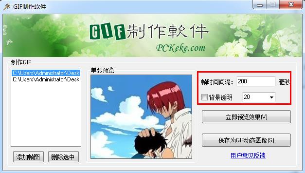 克克GIF制作软件是一款绿色小巧且简单实用GIF动态图制作软件,这款软件可以帮助你轻松地将多张静态图片如BMP、JPG、ICO等格式串联在一起制作成GIF动态图片,添加多张静态图之后,你可以自由调整帧的更换频率、时间间隔和背景透明度,支持图片预览,然后直接保存为gif动态图,欢迎下载使用!