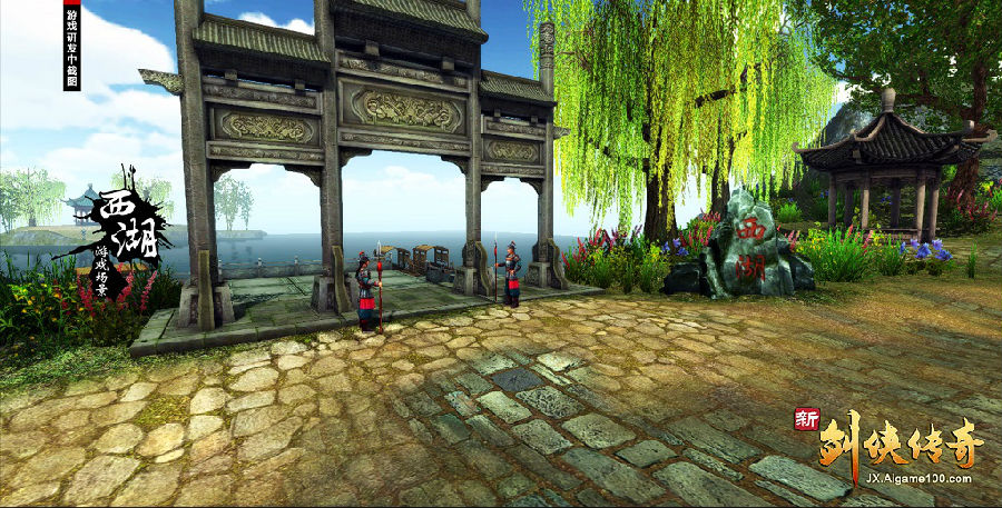 片头的真实历史人物将“剑侠”的精神引申开来,加以升华,点明了本作的精神主题,颇有大片范儿。随后的场景实录中,少林寺的威严肃穆配合浑厚的钟声,五毒教的草木繁荣伴随着飒飒风声,都给人以自然亲切的的印象;建筑结构精巧的室内场景三元楼除了醒目的牌坊之外,悬空吊顶的空中小亭也让人眼前一亮。最后西湖上破雾而出,徐徐而来的神秘小船上站立的侠客又是何许人也呢?