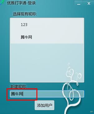 1、首先我们要添加用户:输入昵称,然后点击添加用户