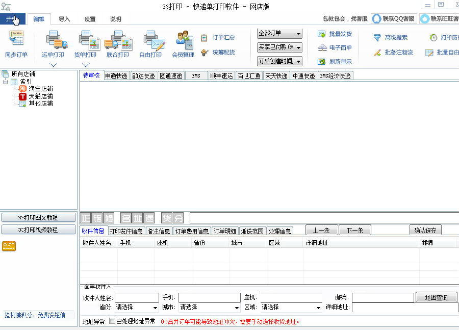 33快递单打印软件一款专为淘宝卖家推出的快递单打印软件,这款软件绿色免安装,解压即用,它能够帮你自动填写发件人以及收件人详细信息,为你即时更新数据,方便你和买家进行快速的快递物流查询,同时支持快递模板下载导入功能,大大增加了单据的打印种类,欢迎各位开淘宝店的朋友下载使用!