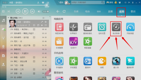 打开酷狗软件,点击“应用”栏,然后点击“格式转换”,开始下载安装。