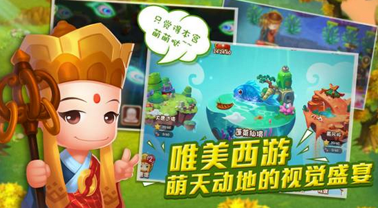 在游戏画面上,《塔塔西游》使用3D人物模型,英雄自带骨骼动画,帅出新高度,萌你一脸血!萌萌哒师父唐僧带领你闯荡大唐边境、蓬莱仙境、火云洞等6大主题地图,踏遍江河湖海,横扫魑魅魍魉,领略旖旎风光!各大主题地图共达120关,包含传统战斗、限时战斗等十余种特色玩法,让你体验不一样的西游,不一样的塔防!