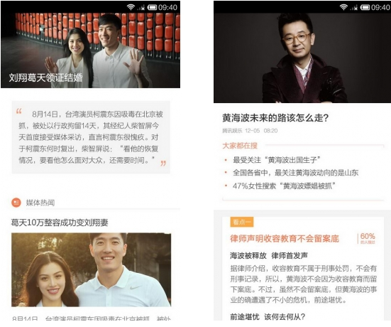 正文页的内容除了秉承热点爆料的采编原则,将用户原有的“看完再搜”,优化为“我搜你看”将用户感兴趣的内容(包括:资讯、图片、百科、视频、音乐)全面直接的呈现出来,打造新一代阅读体验。