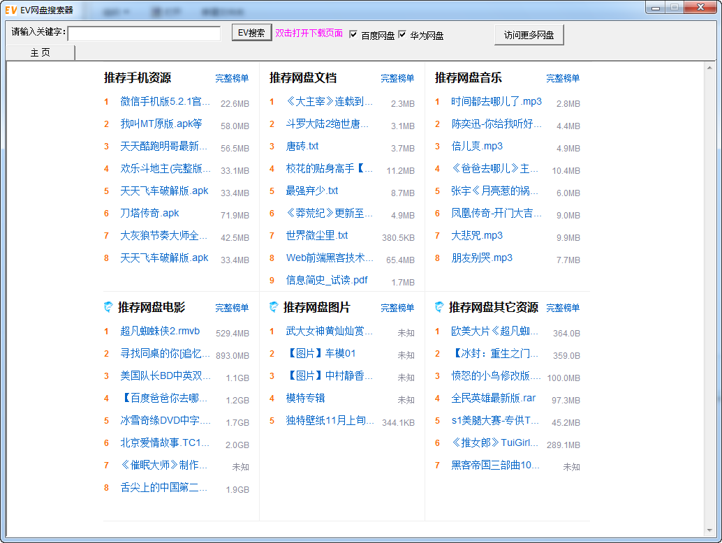 1、搜索百度网盘和华为网盘的资源速度快,加入自有索引库