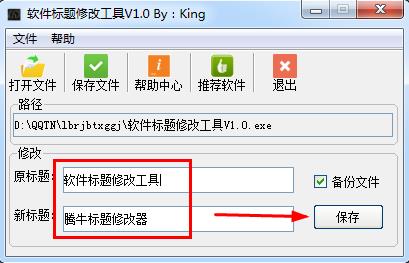 1、打开软件,填写【原标题】和【新标题】,勾选【备份文件】,点击保存;
