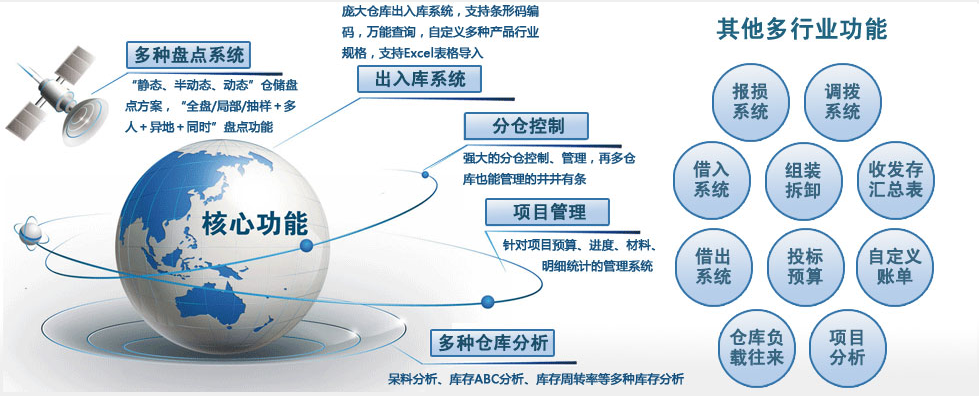 中国首创“静态、半动态、动态”仓储盘点方案,独创的“全盘/局部/抽样+多人+异地+同时”盘点功能。