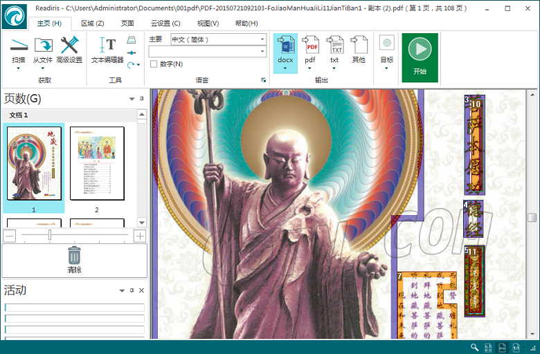 可导入常见的图档格式(JPEG、JPEG 2000、BMP、TIFF、DjVu……)