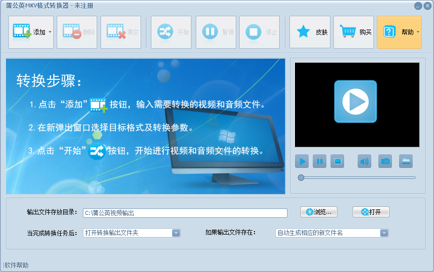 蒲公英MKV格式转换器这款软件可以将时下各种流行的视频格式转换为MKV视频格式,也可以将MKV格式视频转换为各种常用的视频格式。同时软件可以批量操作,还支持转换完成后自动关机。