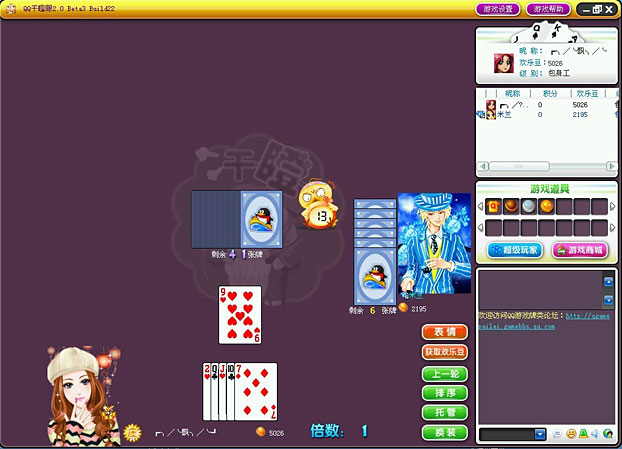 游戏开始时,由东家先出,每人抓5张牌,东家抓6张。无人接牌时,最大的人先摸牌,按照逆时针每人摸一张。以牌剩于多少来判定输赢额度,输家手上有王牌的加倍结算(比如输家手上有5张牌时输了且5张牌中有1张是王牌结算时按10张牌算)