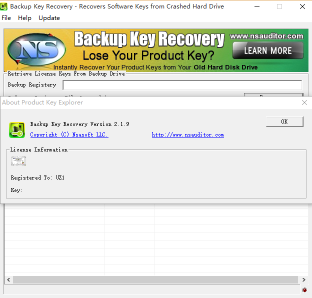 Backup Key Recovery备份密码恢复,您可以收回的软件注册键在案件的计算机硬盘驱动器崩溃。能从旧硬盘驱动器恢复4500种流行的软件产品密钥。