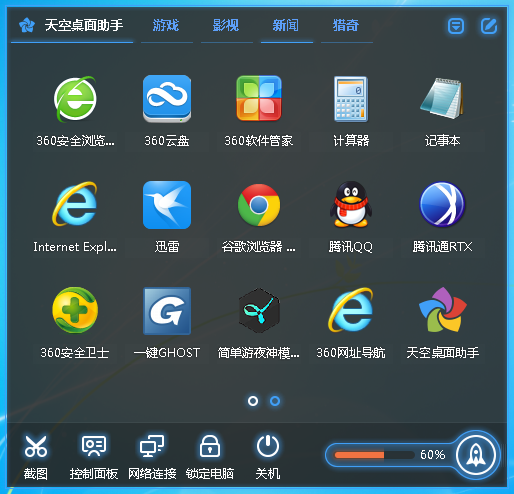 天空桌面助手是一款清爽整洁、轻巧高效、便捷实用、完全免费的桌面管理软件,正如360软件小助手一样,但更加请便、独立。