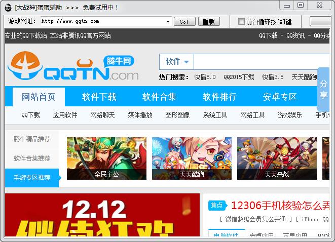蛋蛋大战神辅助是一款专为火爆页游《大战神》制作的游戏辅助工具,这款辅助可以帮助你解放您的双手,轻松玩转大战神的大战神辅助,拥有极速更新,防封号,用户众多,送大礼,一键登录,无限多开,自动游戏等强大功能。欢迎喜欢玩大战神的玩家下载使用!