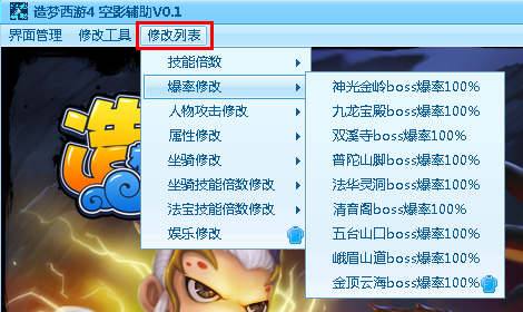 腾牛网小编为大家整理了这款造梦西游4空影辅助,该辅助可在桌面直接登陆游戏,玩游戏更加稳定,并具有技能倍数修改,人物攻击修改等功能。